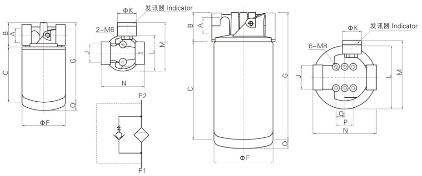4、濾頭上設有安裝污染堵塞發(fā)訊器孔,以便檢測濾芯使用情況