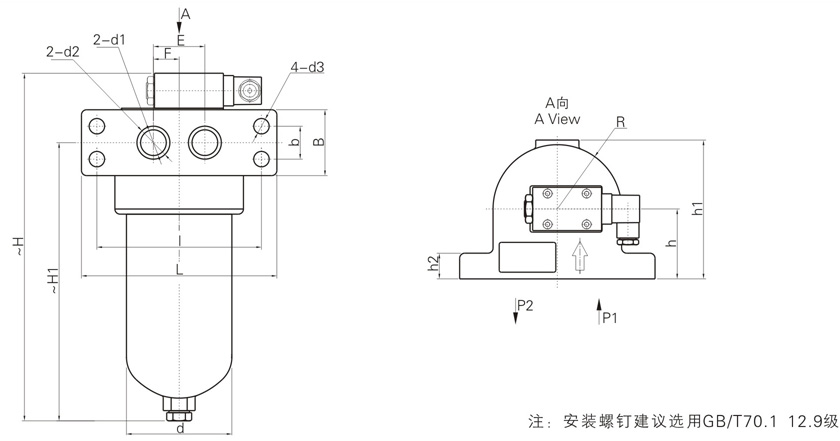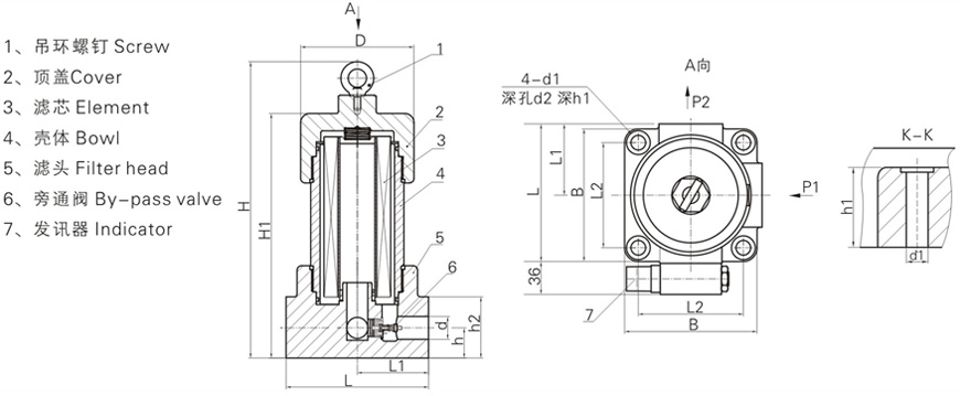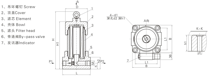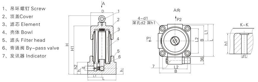 該過(guò)濾器設有壓差發(fā)訊裝置,當濾芯污染堵塞到進(jìn)出油口壓差為0.35Mpa時(shí),即發(fā)出開(kāi)關(guān)信號,此時(shí)更換濾芯,以達到保護系統安全的目的。