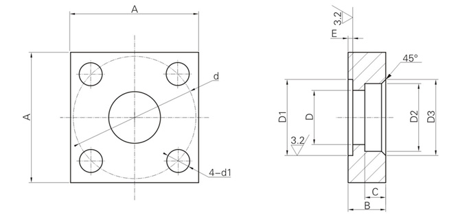 2.1連接法蘭請用戶(hù)參照下列尺寸加工: