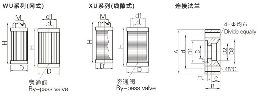 WU,XU系列吸油過(guò)濾器屬于粗過(guò)濾器,一般安裝在油泵的吸油口處,用以保護油泵避免吸入較大的機械雜質(zhì)。該過(guò)濾器結構簡(jiǎn)單,通油能力大阻力小,并設有管式、法蘭式連接,分網(wǎng)式、線(xiàn)隙式兩種。