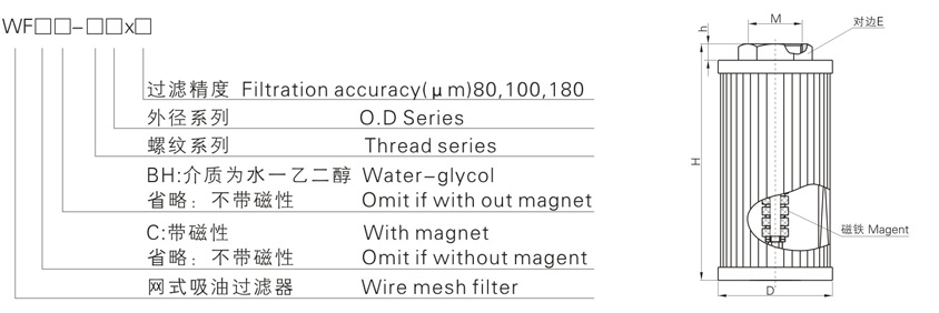 WF吸油過(guò)濾器是安裝在油泵吸油口處,用以保護油泵及其他液壓元件,以避免吸入污染雜質(zhì),有效地控制液壓系統污染,調液壓系統的清潔度。