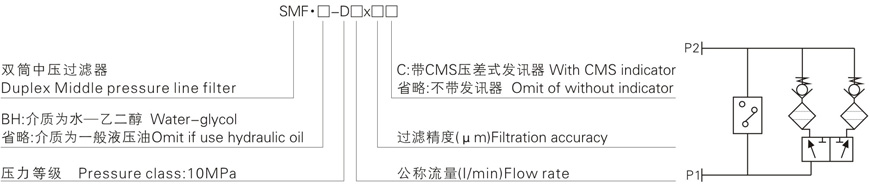 SMF系列雙筒中壓過(guò)濾器(新型)由兩只單筒過(guò)濾器,兩只單向閥,換向閥,發(fā)訊器等組成,它可在系列在不停機的狀況下更換濾芯,適用于連續工作的中低壓液壓系列。