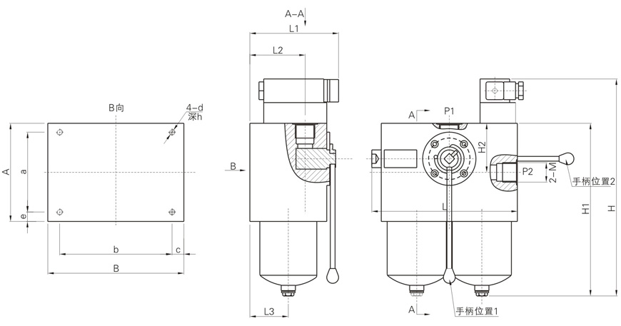 型號 | H | H1 | H2 | L | L1 | L2 | A | a | B | b | M | d | h | c | e | L3 |