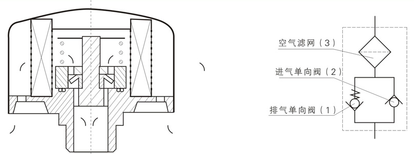 PAF系列產(chǎn)品適用于工程機械、車(chē)輛、移動(dòng)機械以及需要具有壓力的液壓系統油箱配套使用。本產(chǎn)品由空氣過(guò)濾器、進(jìn)氣單向閥、排氣單向閥、加油過(guò)濾器四部分組成,從而簡(jiǎn)化了油箱的結構,又有利于油液的凈化。當液壓系統工作時(shí)油箱內的液面不時(shí)上升或下降,下降時(shí)PAF產(chǎn)品吸入空氣,經(jīng)過(guò)濾網(wǎng)[3]自動(dòng)進(jìn)入進(jìn)氣單向閥[2],進(jìn)入油箱,此時(shí)箱內壓力小于預定壓力,排氣單向閥[1]處于關(guān)閉狀態(tài),能保持油箱內預定壓力,提高油泵的自吸能力,維持油箱內液體的平穩,避免油箱內液體因振蕩或騷動(dòng)而產(chǎn)生泵可能出現的吸空等故障。當工作循環(huán)后流回油箱使液面上升,工作油液溫度也隨著(zhù)升高,生成了油霧氣體并增加了油箱內的壓力;當油箱內的壓力大于預定壓力時(shí),排氣單向閥[1]自動(dòng)開(kāi)啟向外排氣,直到箱內壓力等于預定壓力時(shí),排氣單向閥[1]才自動(dòng)關(guān)閉。這樣來(lái)回循環(huán)既能保護液壓系統正常工作的作用,又能延長(cháng)油液及元件周期和使用壽命。
