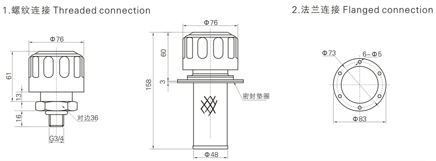連接方式 | 螺紋 Thread (G 3/4") | 法蘭(6只M4 X16) |