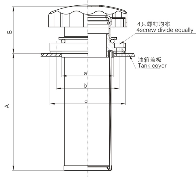 當液壓系統工作時(shí)油箱內油面時(shí)而上升或下降,上升時(shí)由里向外排出空氣,下降時(shí)由外向里吸入空氣。為凈化油箱內油液,在油箱蓋板上垂直安裝空氣濾清器,就可以過(guò)濾吸入的空氣;同時(shí)空氣濾清器又是注油口,注入的新工作油液,須經(jīng)過(guò)濾再進(jìn)油箱,從而濾除了油液內的臟物顆粒。