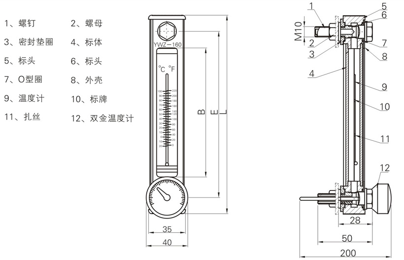 CYW-76~500系列傳感式液位液溫計是我廠(chǎng)在批量生產(chǎn)YWZ-76~500系列的基礎上,參考國外先進(jìn)技術(shù)資料開(kāi)發(fā)的一種新產(chǎn)品。它是利用雙金屬片熱脹冷縮靈敏度相當高的特點(diǎn)來(lái)測量油液的溫度。這樣儀表具有準確度,讀數容易,堅固耐震等特點(diǎn),可廣泛應用于各種油箱、潤滑裝置、冷卻和齒輪傳動(dòng)箱中的液位液溫測量。